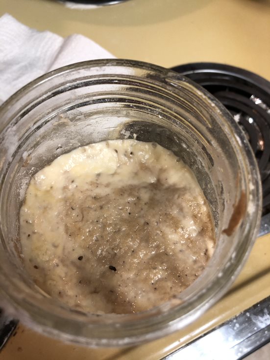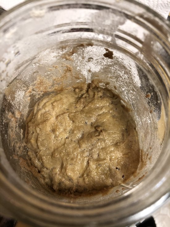 The starter had risen even further up the mason jar, it filled about 3/4 of the jar.